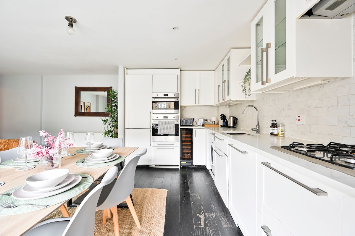 Begin the day with a cup of tea on the sun-washed roof terrace before returning to a sparkling white kitchen to make breakfast. A comfy sofa offers a delightful spot to read a book within this crisp apartment in a charming Georgian building. This brand newly refurbished top floor flat is centrally located within minutes of Fulham Broadway tube, giving you versatile access to all of Central London. A bright and airy reception room enjoys a brand new kitchen with convection hob, oven, fridge, microwave and a Nespresso coffee machine. The open plan kitchen/ living room enjoys a bespoke fitted bench seating area. The reception has USB ports for charging your phone (please bring your phone cable) and a newly installed TV with Netflix. The reception rooms opens out onto a south west facing terrace overlooking mature trees that lead to the park. A perfect spot to enjoy a morning coffee or an early evening drink, enabling you to soak up the buzzy atmosphere. Free Wifi is available. The bedroom suite enjoys bespoke fitted wardrobes with hangers and a brand new ensuite shower room with rain shower and feature lighting. We supply one set of fresh linen for your stay, Nespresso coffee, tea, milk, sweeties and a bespoke handbook to guide you to local restaurants and necessities. Whether your stay in London is for business, touring, shopping or simply pleasure, this is an ideal central location in London. To the rear of the building is access to coffee shops/ restaurants and a delightful park, with Boris Bikes available to rent should you fancy taking a tour. 07703004354 - I am virtually 24/7! There is a bus stop just outside the apartment with routes that offer short trips to popular London attractions. Harwood Road Apartments are ideally located very close to Fulham Broadway, giving you access to the whole of central London via the underground network and multiple bus services. The area has a buzzy vibe and a large collection of restaurants and shops offering a wide range of cuisine from French (Cote Brasserie) to Thai (£9.95 for a two course lunch opposite the flats) to Byron Burger to an Oyster Bar. There is a gym, cinema and a beautiful park (with tennis courts) all within a stones throw!