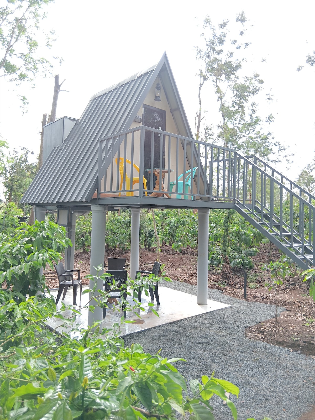 Welcome to our peaceful one-bedroom chalet, located at our coffee plantation's edge. Perfect for couples or small families, this secluded retreat 200m from the ranger's farmhouse ensures privacy. It boasts a modern en-suite bedroom and a private balcony with serene pond views. Immerse in tranquility, enjoy home-grown coffee, and discover plantation life on leisurely walks. PS: The natural pond you see infront of chalet is not suitable for swimming. It is dangerous to enter due to mud and depth
