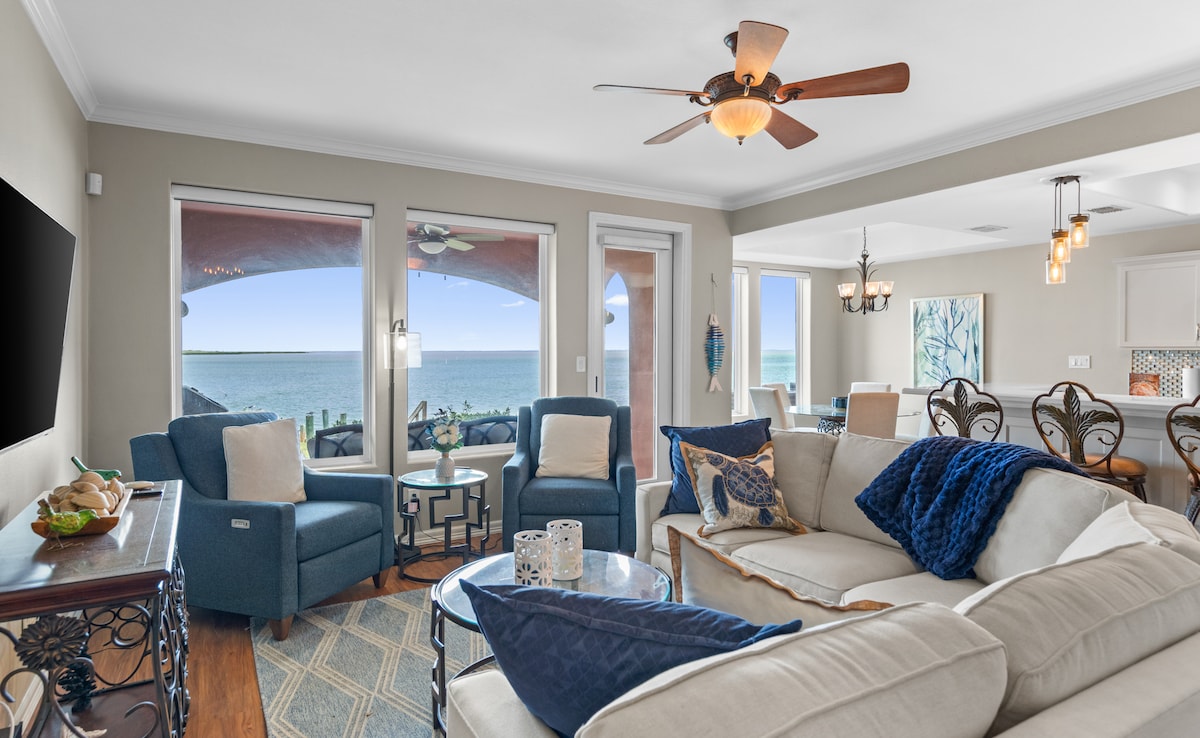 Top floor beachfront condo just steps from the ocean!! You’ll love my place because it will not feel like a rental, has the best location on the Island, breathtaking panoramic views, remodeled kitchen, grill, 2 pools ( 1 heated in the winter), 2 hot tubs, 2 tennis courts, fully equipped kitchen, comfortable beds, washer and dryer, dishwasher, 3 LCD TV's, upgraded premium Broadband internet and Wi-Fi throughout, gated parking lot and elevator. The views from the top floor are out of this world!