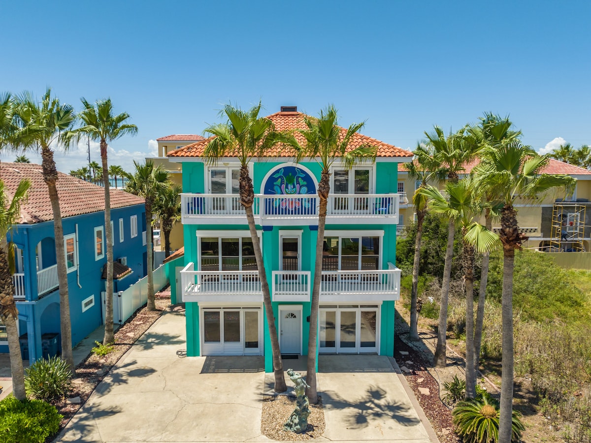 Hidden gem in the entertainment district with lots of restaurants close by, beach access a block away, picturesque views of fireworks and sunsets over Laguna Madre, and the SPI Migratory Bird Sanctuary just off the back patio. Find serenity by the bubbling fountain, surrounded by flowers and the singing of songbirds while relaxing on our color-filled patio with no immediate neighbors to bother you. Featuring eclectic decor and an industrial look with open ceilings and handmade bedroom furniture.