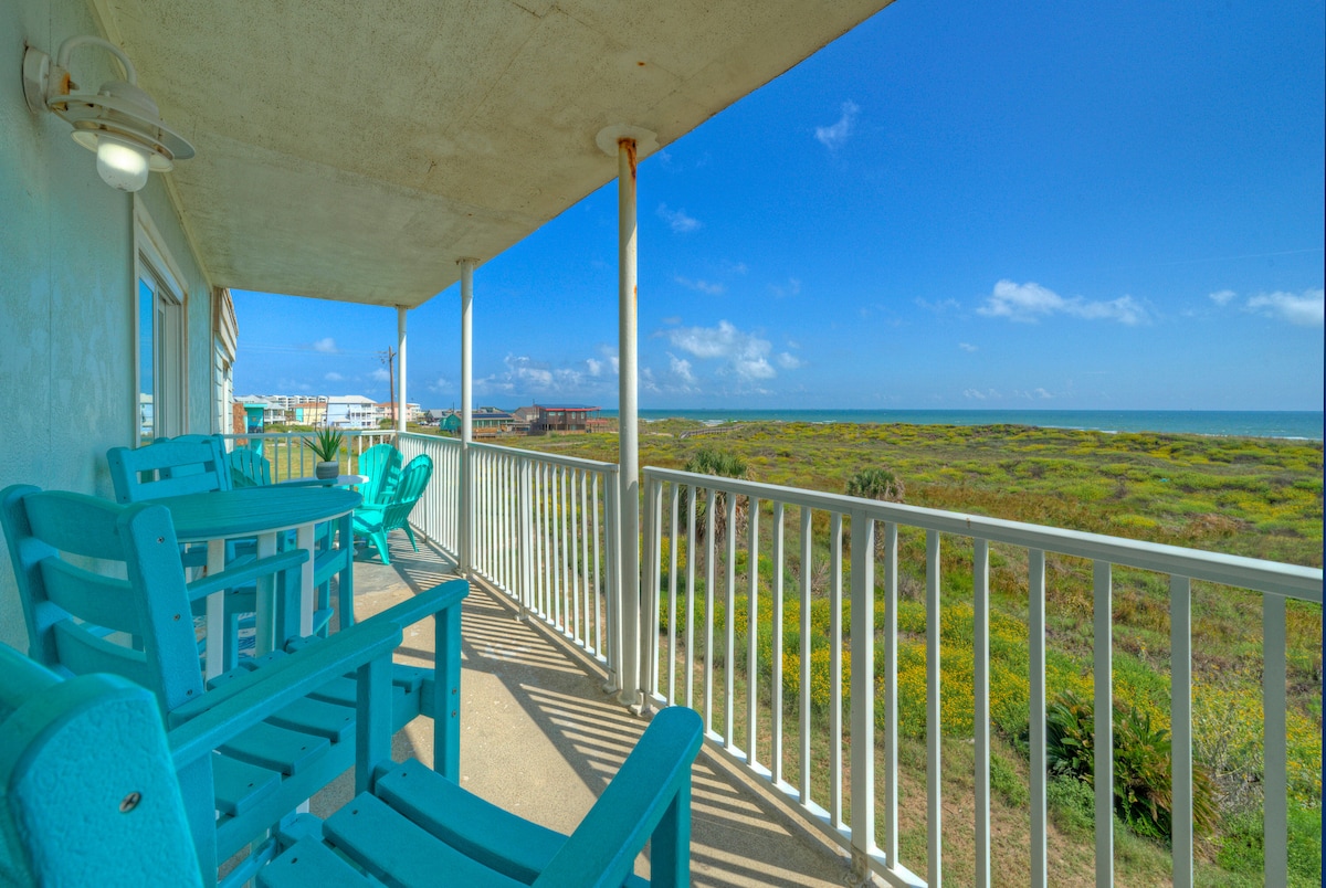 This is a beach front property on North Beach. Sunrise views. We are the only beach house on the beach. This is close proximity (5 min drive) to the Texas State Aquarium & Lexington Museum or use the beach walk from outside the home all the way down as well. Fishing area & play area is walking distance. Great place to enjoy the sun and the beach ! This house is clean and ready to enjoy your vacation. We have another house across the street to accommodate more guests up to 8 more, message me.