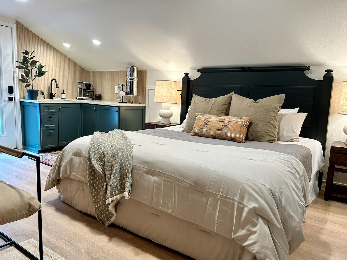 Nestled in the heart of the town, we are just minutes from restaurants, shops, entertainment, and the sparkling shores of Corpus Christi Bay! Explore nearby Cole Park, the pier, and witness picturesque sunsets at McGee Beach. Rest easy in a king-sized bed with high-quality linens. Unwind in the bathroom featuring a spa-like tub. The kitchenette includes a mini fridge, microwave, a Mocamaster for you coffee lovers, and a Berkey water dispenser. Dine under the Texas sky on your private patio!