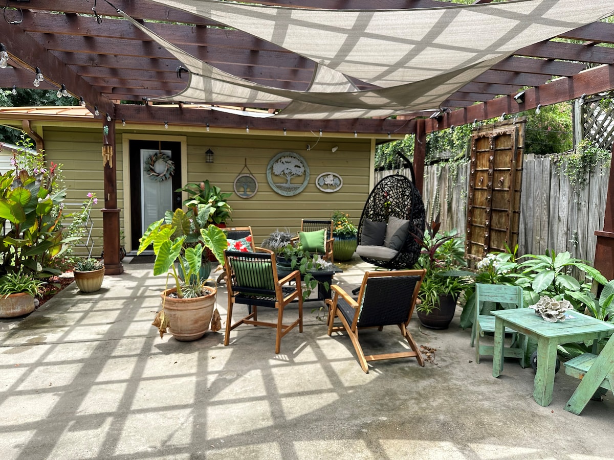 Enjoy our comforting and relaxing completely remodeled modern farmhouse. Nearby you’ll find restaurants, bars, parks, museums, galleries, event center, marina, and the downtown beach with promenade. Great views of birds from the patio. New appliances, modern spa bathroom, blackout curtains, 2 HD TVs, Roku/streaming services, USB ports, office space with fiber WiFi, and sleeper sofa. Private patio with outdoor hot/cold shower, glider swing, bistro set, grill, mist fan & herb/pollinator garden.