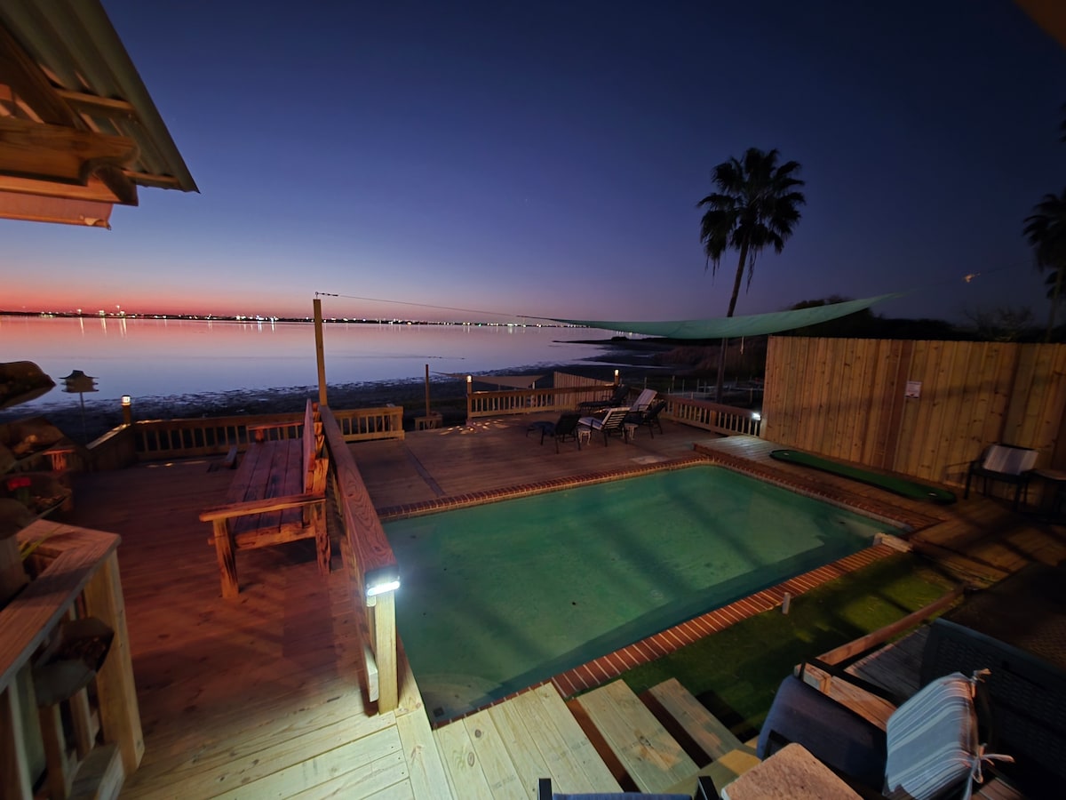 Waterfront Cottage and Pier is perfect for your next vacation, business trip, or fishing trip. Shore Waterfront Cottage is located on the Laguna Madre in Flour Bluff. Enjoy your morning coffee or tea with the most beautiful sun rises on the Laguna Madre from your own private pier, living room, or bedroom! Windows throughout provide water views throughout the house. Relax and Bird watch from the deck or relax and fish from your own lighted private pier. Relax and Enjoy your stay!