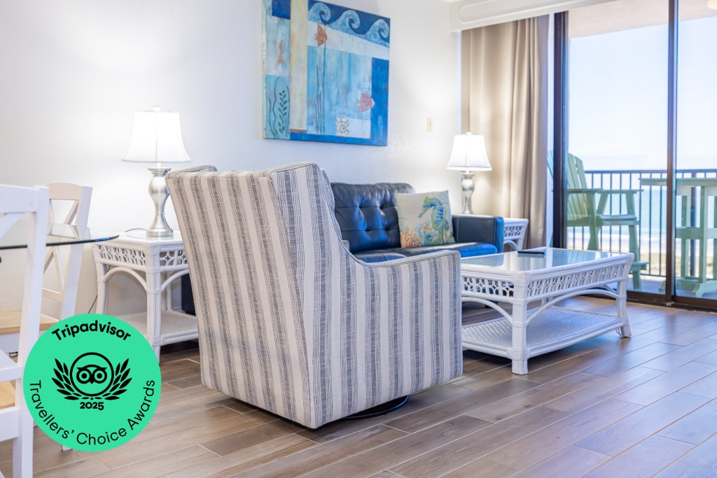 The Isla Grand Beach Resort condo features views of our pools, along with beach views. Condo #607 accommodates up to 6-ppl with 1-king bed, and 2 queen beds, and a sofa sleeper in the living room. Our Condo unit Features: 2 Balconies 3 Televisions with 74- Spectrum channels Sleeper Sofa in selective rooms (inquire) Iron and Ironing Board Hairdryer Full size refrigerator Full size kitchen / No microwave Free Wireless Internet Digital In-Room Safe at this cheerful getaway