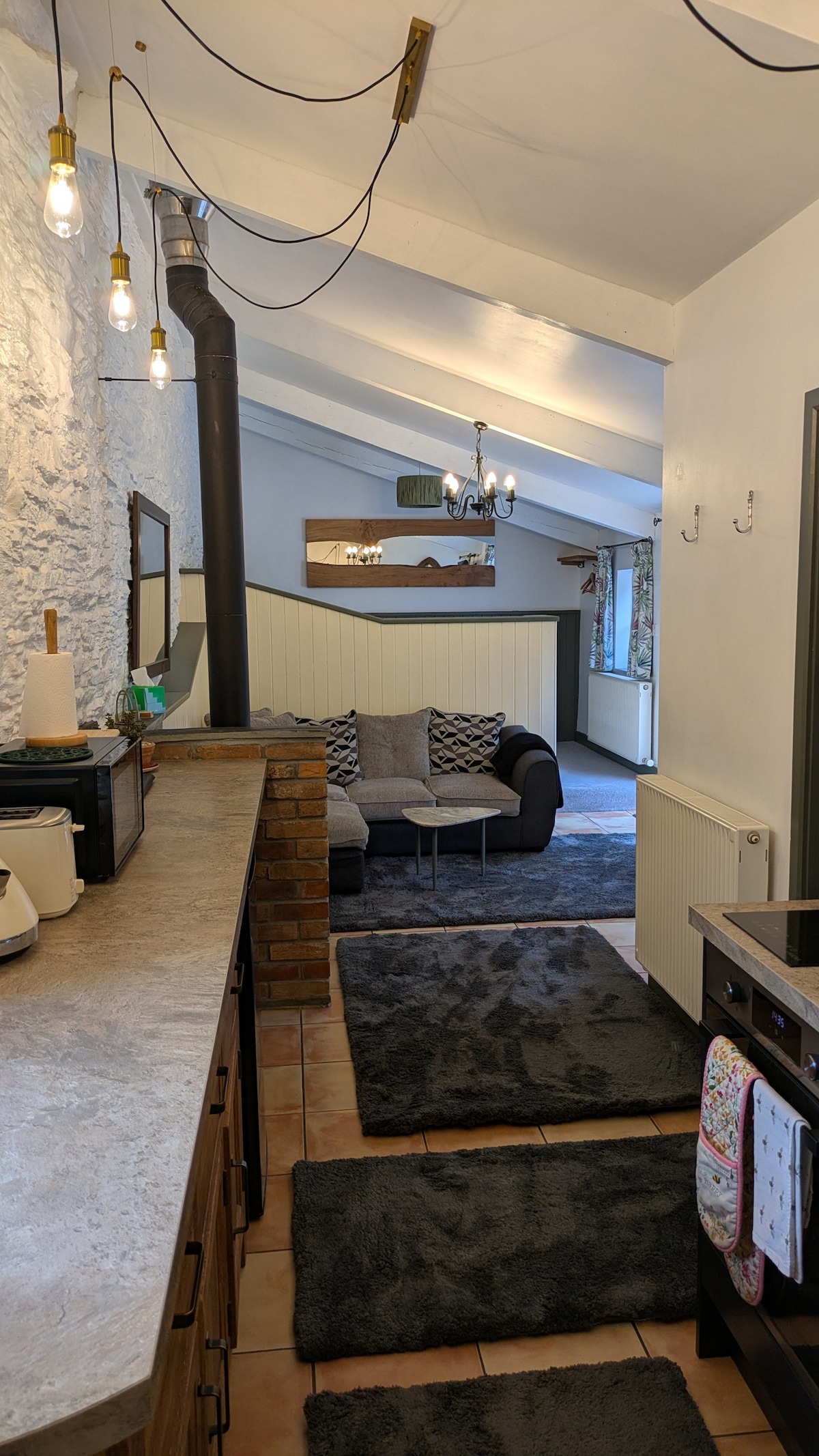 The old stables has been converted into a cosy space with a wood burning fire. Surrounded by 7 acres of mature gardens and fields there is plenty of outside space to relax and explore. Up to two dogs welcome. Shared space available in the Victorian conservatory. Free parking with electric car charging points available, we ask you leave a donation for electricity used to charge your car. Eco toiletries provided.