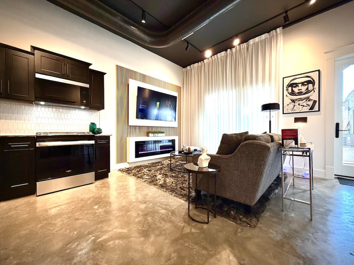 Experience the beauty of downtown Paducah at our stunning historic condo. Curated by local interior designer, this space boasts stylish design elements combined with modern amenities to create a truly unique stay. You'll love the large windows, soaring ceilings, and original hardwood floors. You'll also have 24 hour access to a state-of-the-art gym. With its prime location overlooking Broadway, you'll be just steps away from top dining, shopping, and entertainment options.