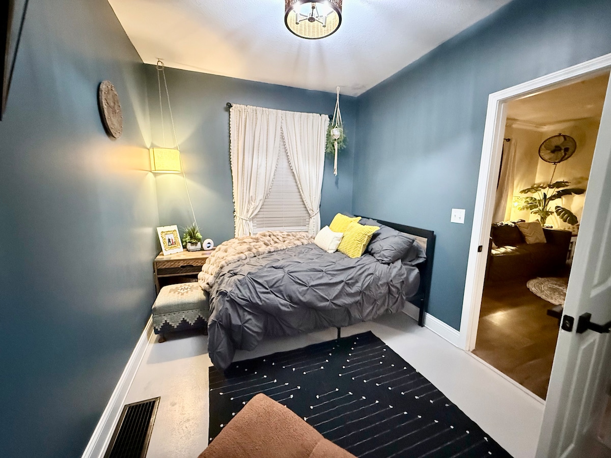 Book your next stay in a life-sized dollhouse! Enjoy suite space and walk-out parking 10 minutes from Murray State University at this 'Little Flat'. The efficiency style tiny house was originally a site-built salon, now renovated for extended or short term stays. The Little Flat features one queen bed, a kitchenette, dressing area w/ rollout mattress & bath. On the rural, west side of campus, the gravel parking lot has plenty of safe space for an RV or truck/trailer. Cute and cozy! Y'all come!