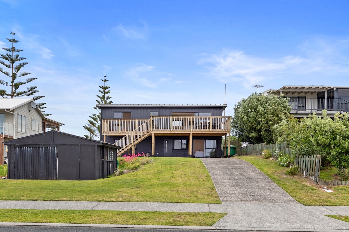 Right on top of the beach the private deck overlooks the endless Pacific Ocean From sunrise to sunset!🌅 A beautiful long white sandy beach, perfect for long walks, swim, paddle or grab a boogie board Gather shells, catch a fish or dig for tuatua’s , all right on your doorstep Inside is homely and well stocked Instant relaxation loads of sunshine and comfy couches, aircon avail. Sit back enjoy the view with the peaceful sound of the waves