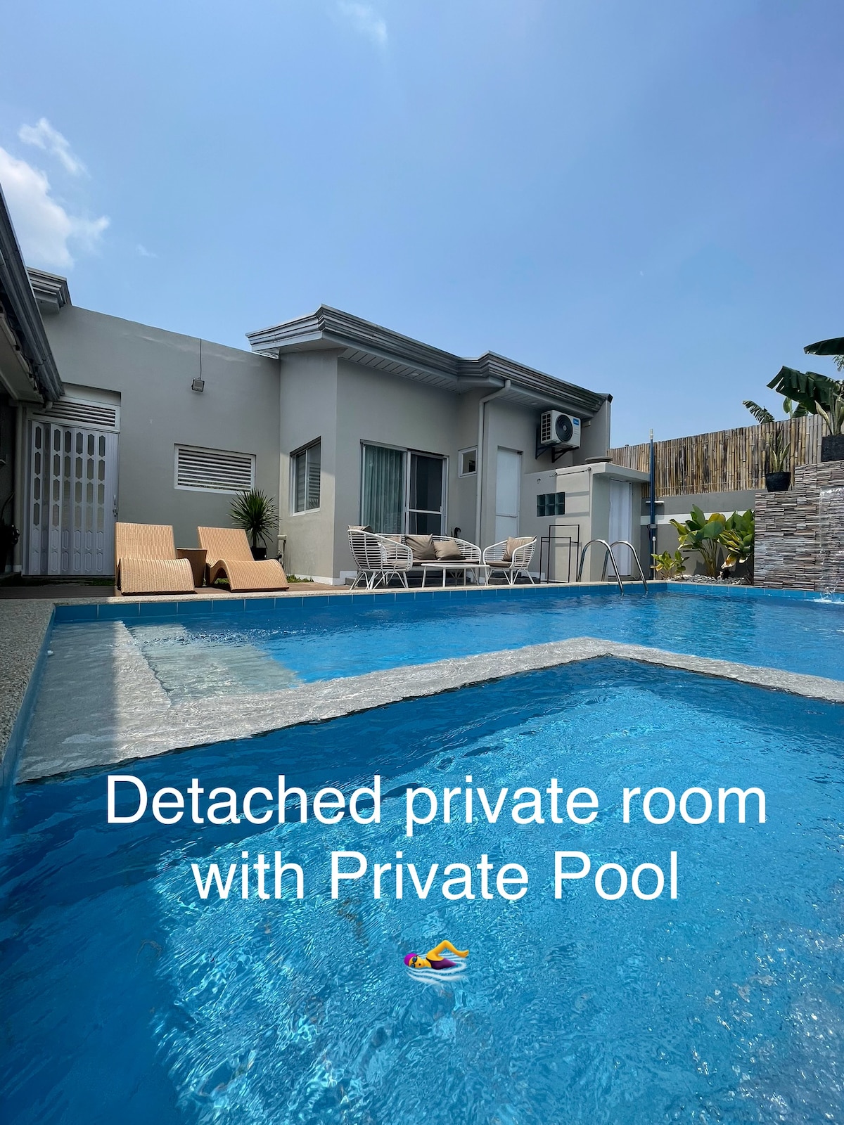 Relax and unwind in this newly built cabin with plunge pool and spacious garden. Fully air-conditioned cozy cabin with spacious loft style living space and modern bathroom with bathtub and hot shower. Has a spacious garden and a backyard perfect for cooking/grilling and relaxing by the pool. Equipped with fast internet with speed of 100mbps. You will have the whole place to yourselves. Perfect for a relaxing getaway or working remotely. Sampaloc Lake - 20 mins away SM San Pablo - 15mins away