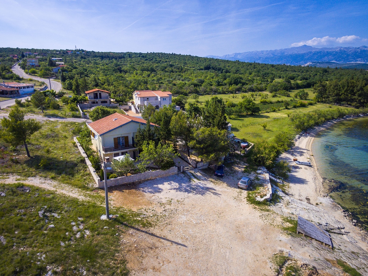 Sunny apartment located first row to the sea, has two bedrooms, kitchen, toilet and two nice terraces. In front of the house there is a private deck for enjoying the sun and swimming. The nearest beach is 1 minute walk away and the famous Zrće beach in Novalja is 15 min car journey away. There is a shop 5 minute walk to the apartment.