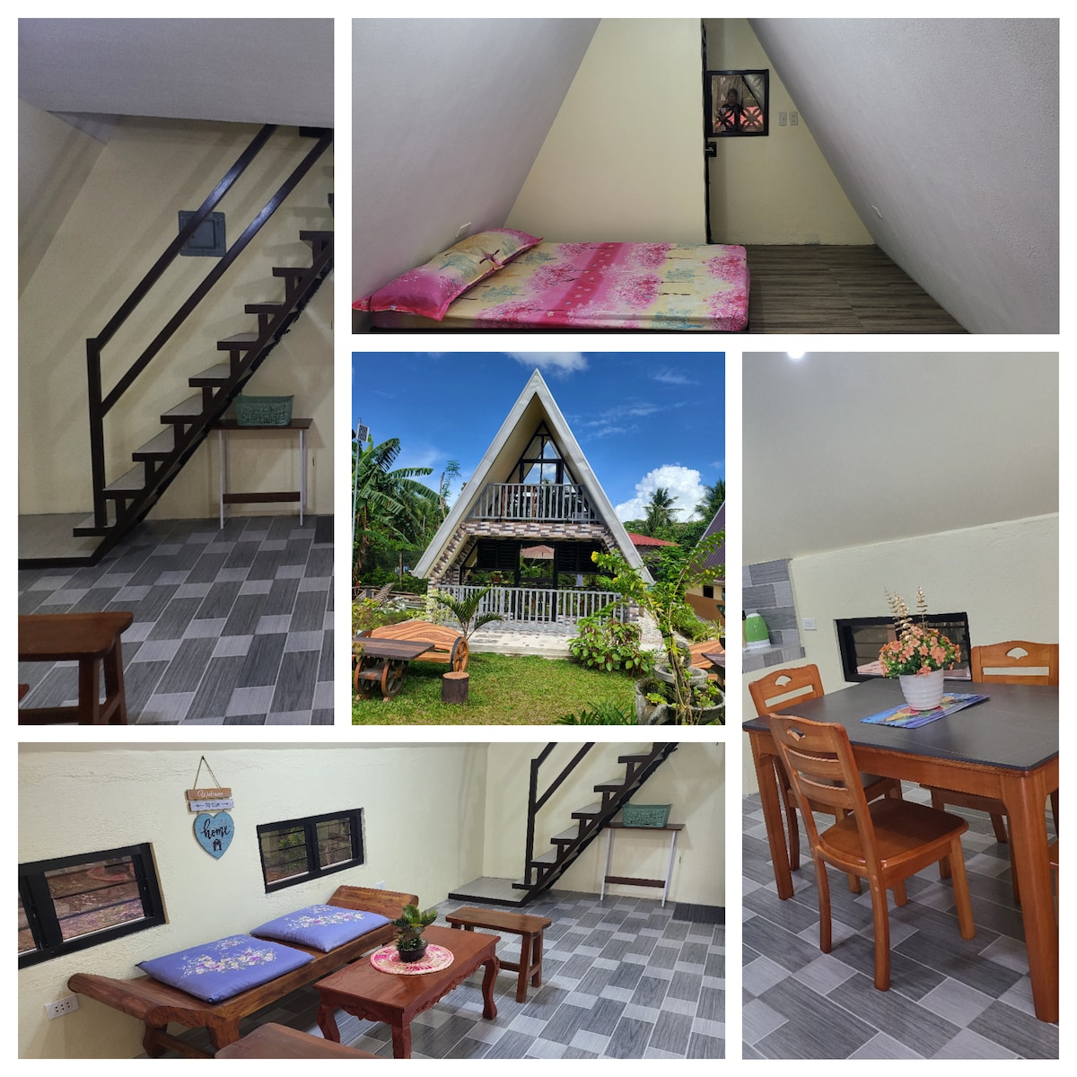 Perfect for a family getaways and barkada bonding with lots of room for fun. Escape to serenity! A stylish A-frame cabin nestled in Sariaya, Quezon • Private outdoor pool for sun-kissed fun • Jacuzzi in bathroom for relaxation • PS5 console for gaming thrills & 65” Smart TV • Air-conditioned rooms for cozy comfort • W/ full kitchen • Board games and Card games -Truth or Drink | Scrabble | Poker -Cluedo | Pictionary |Jenga | Codenames • With parking on-site