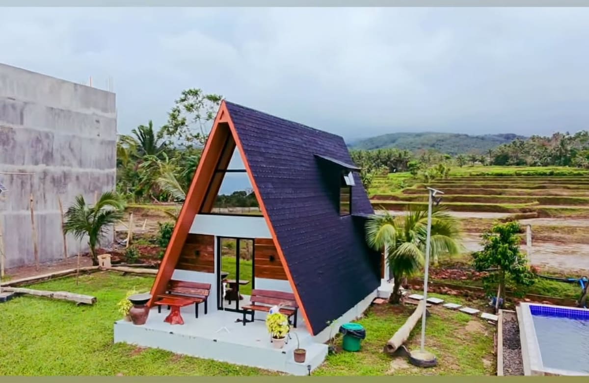 Perfect for a family getaways and barkada bonding with lots of room for fun. Escape to serenity! A stylish A-frame cabin nestled in Sariaya, Quezon • Private outdoor pool for sun-kissed fun • Jacuzzi in bathroom for relaxation • PS5 console for gaming thrills & 65” Smart TV • Air-conditioned rooms for cozy comfort • W/ full kitchen • Board games and Card games -Truth or Drink | Scrabble | Poker -Cluedo | Pictionary |Jenga | Codenames • With parking on-site