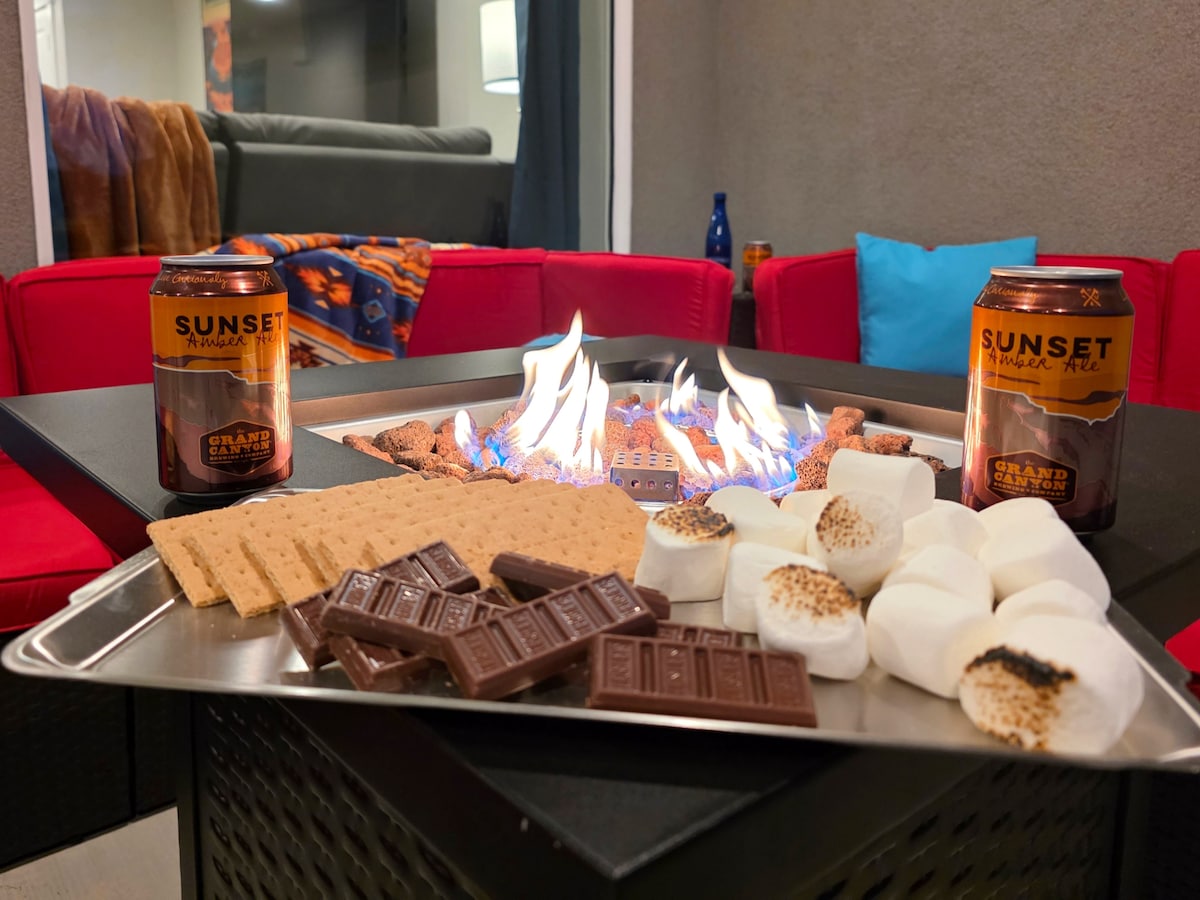 Central to Horseshoe Bend, Antelope Canyon, and Lake Powell! - 2 minute drive to downtown Page - 5 minute drives to Antelope Canyon & Horseshoe Bend - 8 minute drive to Lake Powell marinas 3BR/2BA modern home, remodeled in 2024. Sleeps 10, 5 total beds, vaulted ceilings, open concept, big 6px hot tub, outdoor firepit and patio area, BBQ grill, washer/dryer, easy boat parking, accessible garage with MARIO-themed game room. Thoughtfully managed and maintained - clean, comfortable, and *quiet*