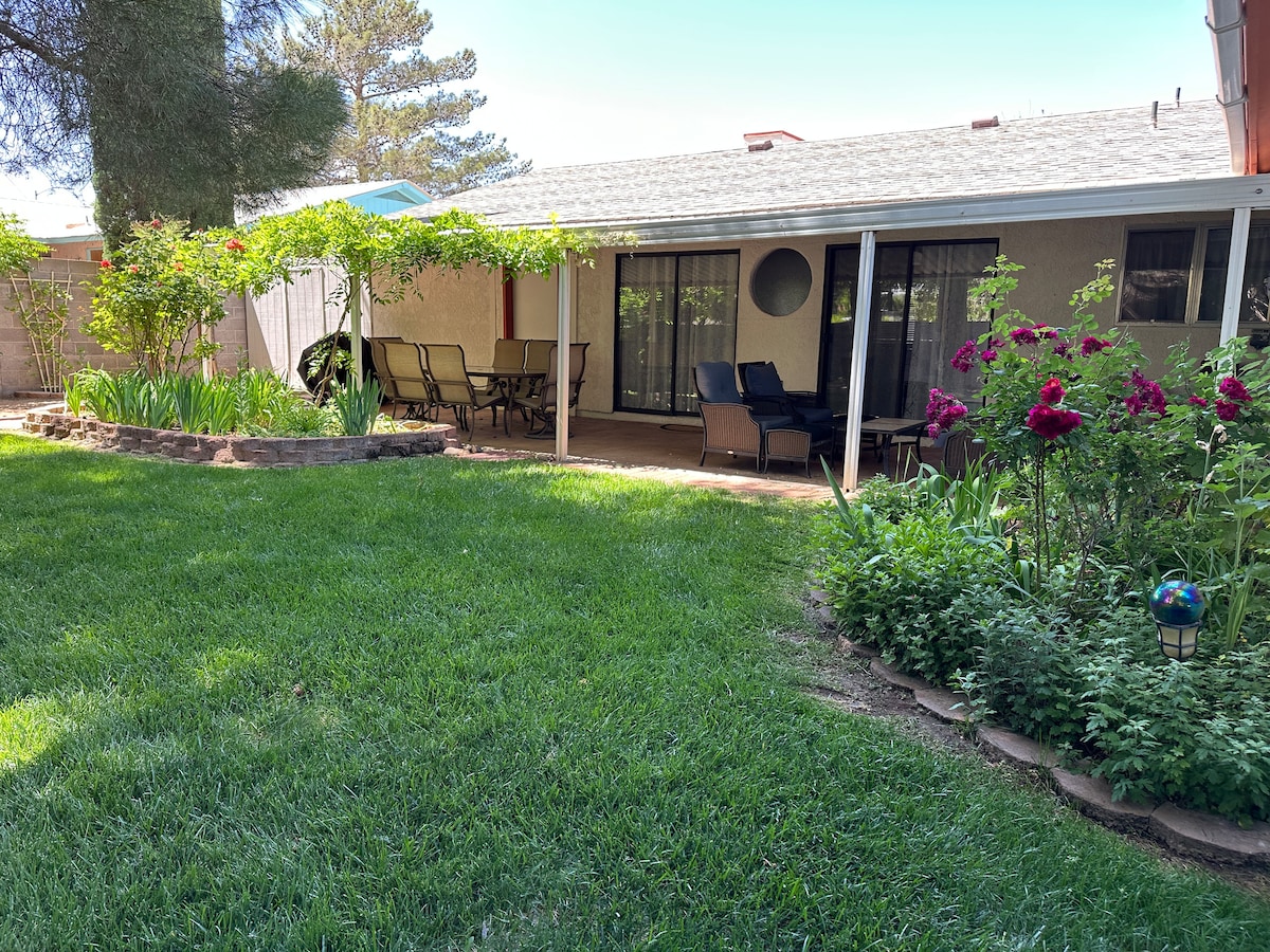 💜Awaken to the sound of morning doves in your Artist Inspired Guest Suite, small & cozy, peaceful, safe, family neighborhood ❤️Private Entry 🧡Private Backyard, Deck & Bistro 💛Master BR w Queen Bed 💚Private Bath 🩵Mini microwave, Mini Fridge, Keurig/Coffee/Tea/No Kitchen 💙1 mi-Restaurants 💜1 mi-Hiking Rim Trail w Magnificent Views 💛3 mi-Horseshoe Bend 🧡7 mi-Antelope Canyons
