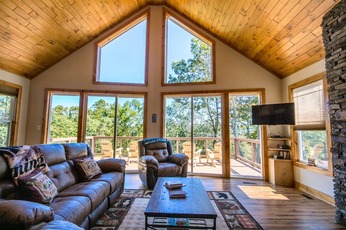 Authentic yet modern log cabin nestled by the Shenandoah River in Luray, VA on our hobby farm. Over 800 5-star reviews! Remote workers' paradise! Acres of private riverfront. Use our water equipment and walk the trail. Cozy up next to the wood-burning fireplace in the winter. Easy drive to the Luray Caverns, Shenandoah National Park, George Washington National Forest, Massanutten or Bryce Resorts for skiing, and much more. Fresh farm eggs and firewood sold on site.