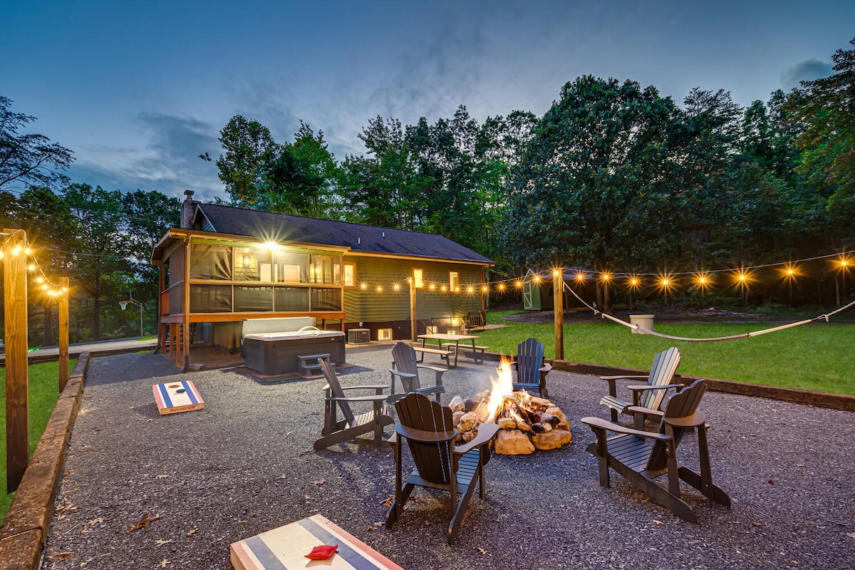 Panoramic Mtn Views: Game Room, Hot tub, Fire pit!