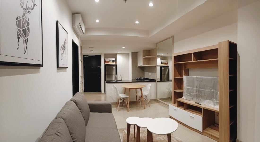Experience a joyful moment with your spouse, families or friends at this stylish place. This apartment offers a cozy atmosphere and the open floor plan seamlessly connects the living room, kitchen and dining area The modern amenities and thoughtful design elements add to its charm, making it a truly special place Located just beside Aeon Mall BSD and 3 mins drive to International Convention Exhibition (ICE) BSD This is a newly build unit and full renovation finished in early 2024.