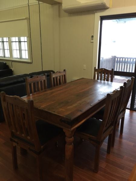 Keep it simple at this peaceful and centrally located home on the main street of North Mackay. Step out the gate to the beautiful Gooseponds walk, which will take you past a skate park, exercise stations, playgrounds and the community pool , Taverns 500m either way from the front door, convenience/takeaway store across the street. It's all there. The home is fully equipped with a cleared clean space for you to enjoy. Relax on the back deck lounge or enjoy dinner outside on the bar style setting.
