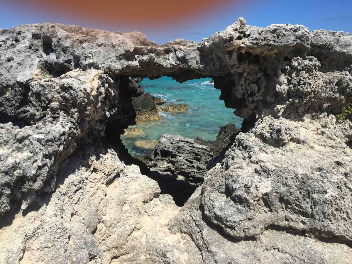 This Cozy studio is located directly across from one of Bermudas most family friendly beaches. There is a large field with a walking track and an outdoor basketball court across the street, and bus stops are easily accessible. Eve's pond nature reserve is a two-minute walk away and you can get there along scenic walking trails. A mile away is Flatts Village which is home to restaurants, and the Bermuda Aquarium and Zoo. A mile in the opposite direction are restaurants and a large supermarket.