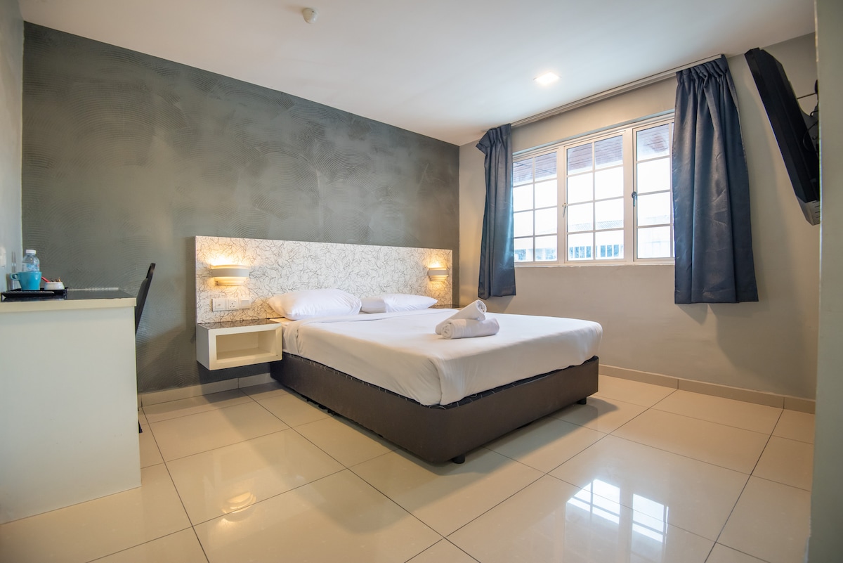 This Double Room accommodates 2 persons (Age: 7 and above only) and is completed with its own en-suite bathroom (shower with instant hot water). The room has a Queen Size bed, rack with hangers, bedside table, ceiling fan and free Wifi. **Depending on occupancy upon check-in, the reservation may be transferred to a different floor.