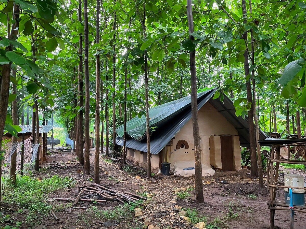 Welcome to Doen Din Mudbrick Hostel, a serene eco-retreat 5 km from Pai City. Nestled in a teak and bamboo forest, our hand-crafted mudbrick dormitory offers cozy, sustainable lodging. Enjoy a natural pool, wood-fired pizza nights, and workshops on eco-friendly building. Our café serves fresh coffee, and our five friendly dogs add a personal touch. Explore nearby national park trails and unwind around our fire pit. Experience rustic charm, natural beauty, and sustainability at our unique hostel.