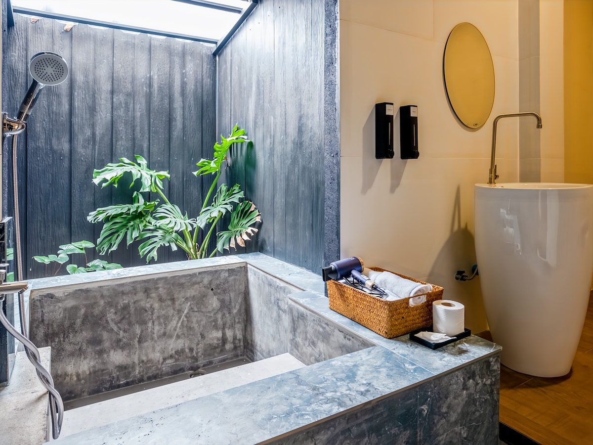 山景套房:私人下沉式浴缸和花园