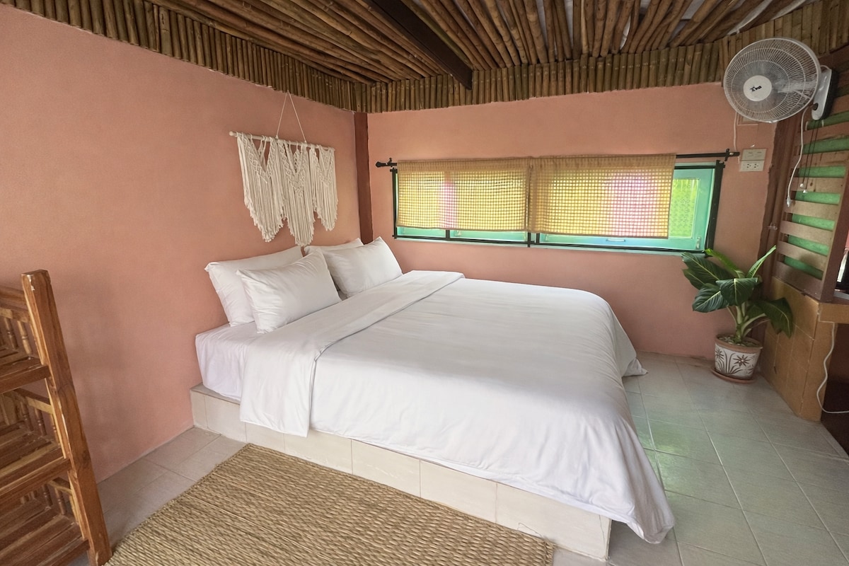 Welcome to The OM Home – a spacious, designed family house in the heart of Pai! 🌿 Includes: 🛏️ Master bedroom (king bed, south-facing) 🛝 Kids’ room with custom bunk bed + work corner 📺 75” Smart TV & full comforts 🌿 Big garden + fire pit 🌾 Covered terraces with field view 🍽️ Fully equipped kitchen with dishwasher & drinking water ❄️ 3 A/C units 🧹 Weekly cleaning & sheets 💡 Electricity: 7 THB/unit Your Family Home in Pai! 🏡✨