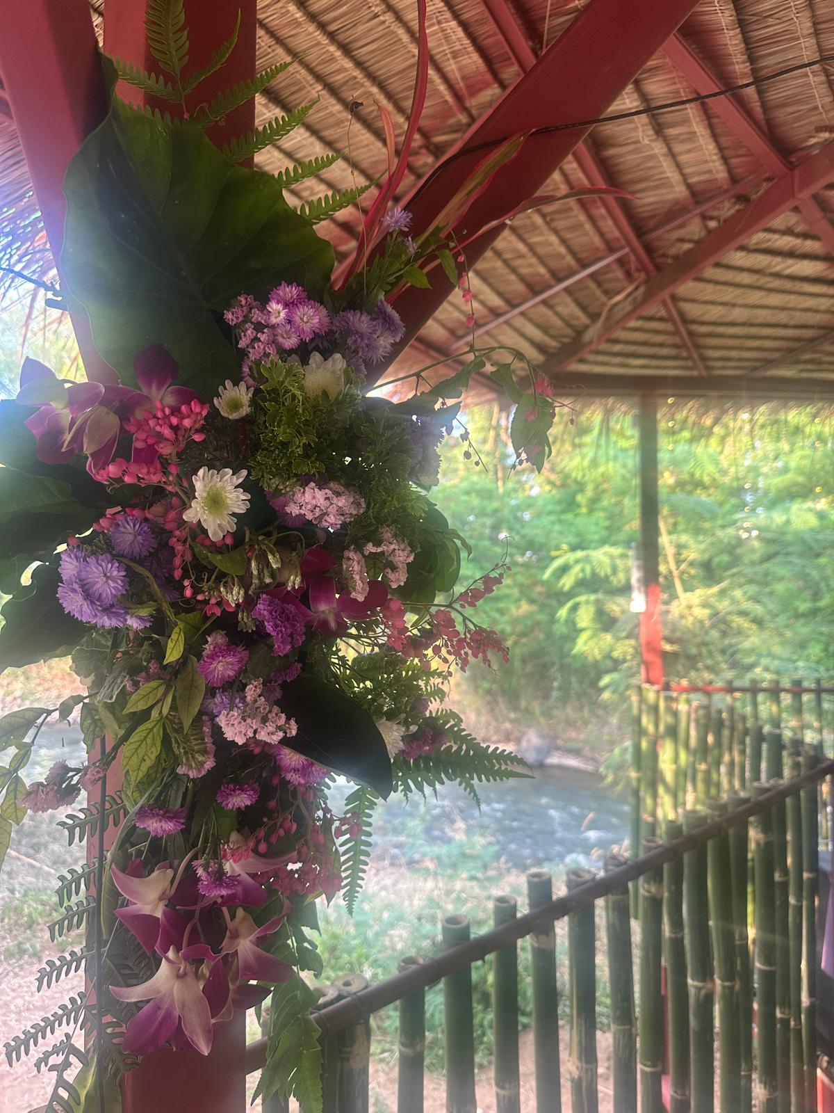 Thai wooden house with private nature hot spring fantastic garden and outdoor space suit with family 2 bedroom 3 stones hot spring tub 1 hot tub 3 toilet 2 shower 1 big kitchen and big table Laundry room 3 air purifiers 2 air conditioner Parking Near local shop , local restaurants , river , nature trail , national hot spring park , memorial bridge , spa , elephant camp good neighborhood Include 1 or 2 times a week housecleaning by maid and gardening 4-6 days a week