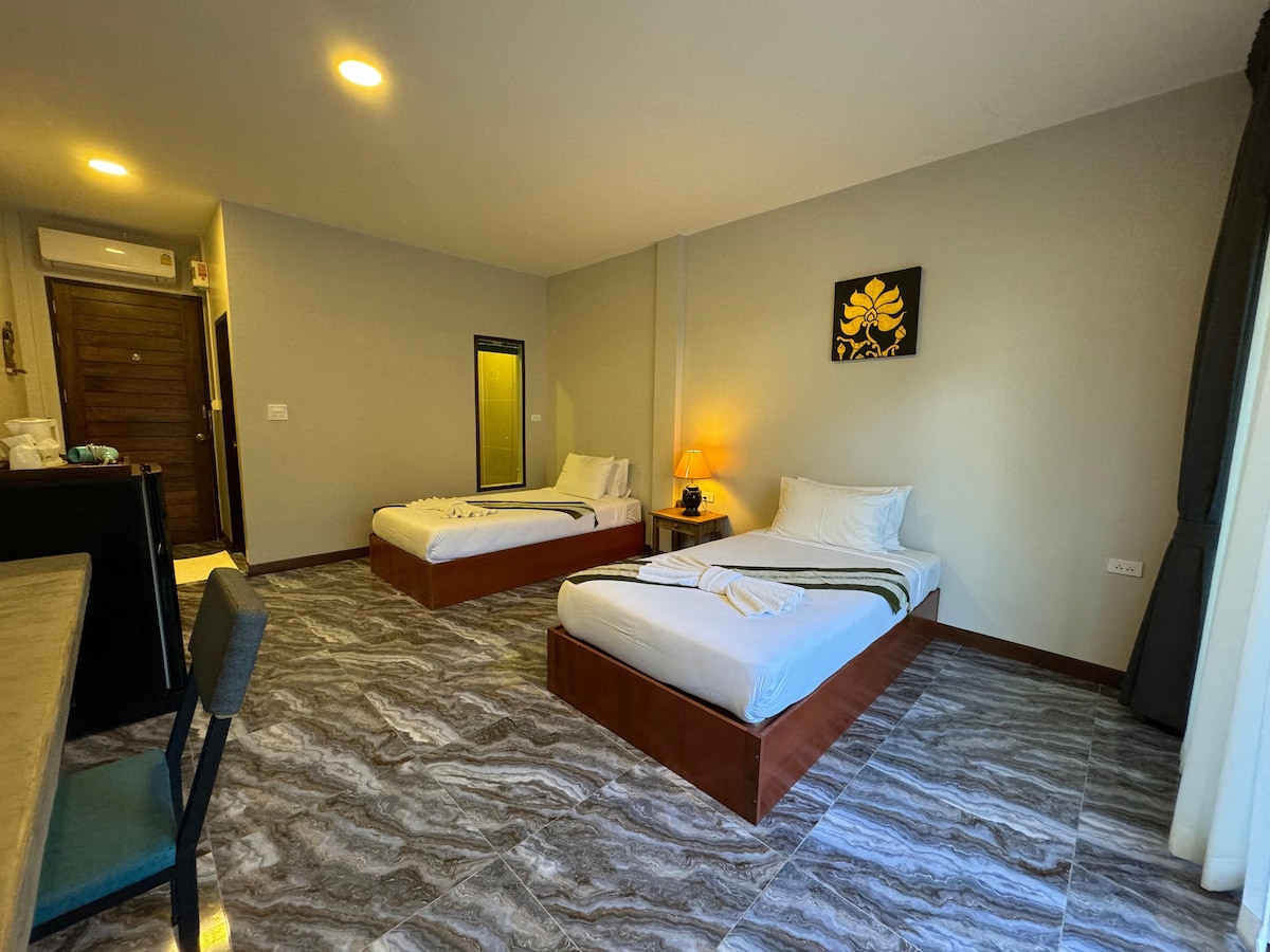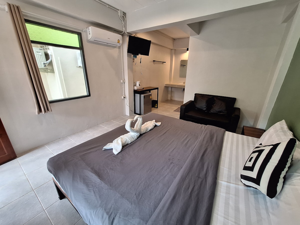 450 M to Walking Street and River! The location of this was excellent. 5 minutes walk into town, but remote enough for peace. Amazon coffee & 7-11 opposite. No kettle in the room, but hot water in reception & coffee in the morning.The most comfortable bed ever!! Beautiful views of nature.