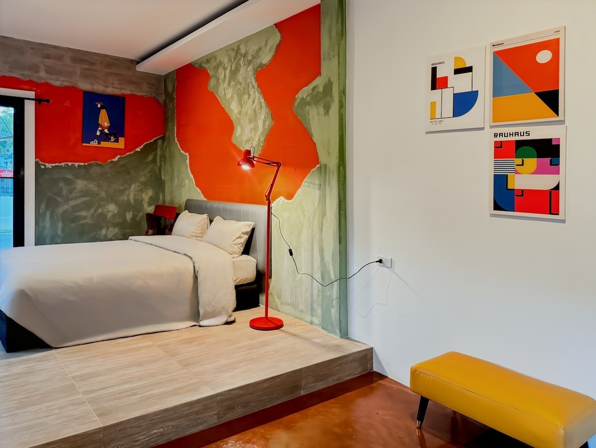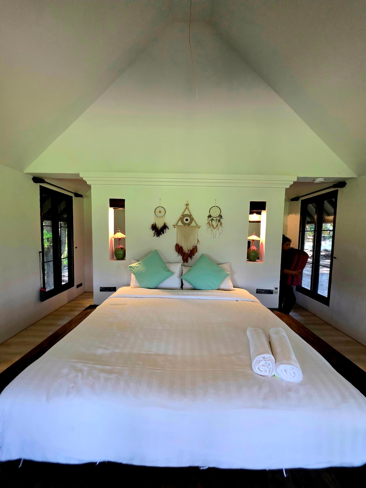Embrace comfort and calm in our standard double room, featuring a spacious queen bed, air-conditioning, a desk space, organized shelving for added convenience and a balcony. Perfect for couples or solo travelers seeking extra space, the room offers a serene escape with access to Ark’s yoga shalas, coworking space, wellness space, healthy restaurant and a café. Set in a tranquil neighborhood near Pai’s park and local market, it’s a soulful base for rest, reflection, and connection.