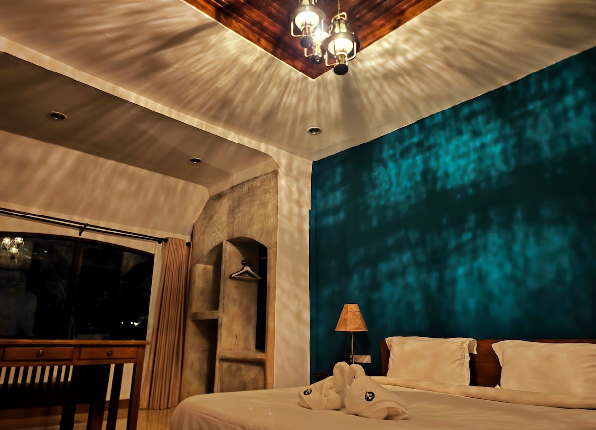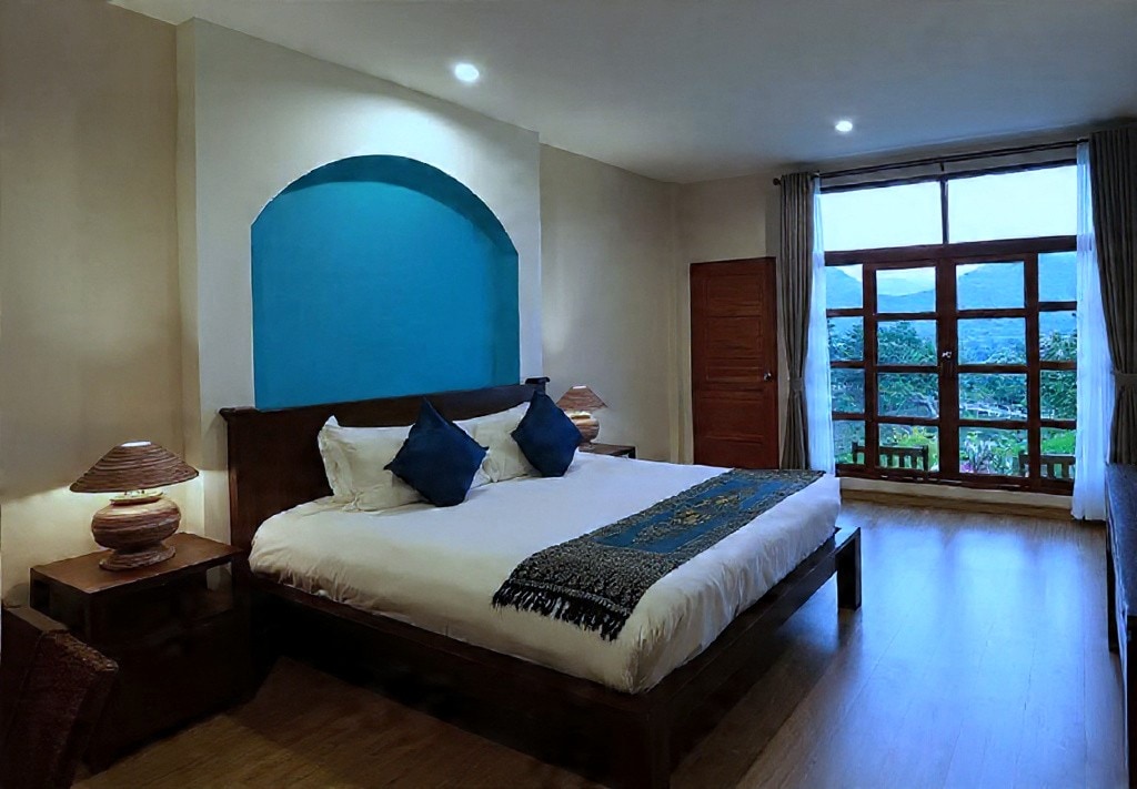 Step into your private honeymoon villa and soak up the mountain views. Wander through lush gardens, relax by the lake, or head to the rooftop to share a sunset or moonrise together. With a 1BR, A/C, and private bathroom, it’s your perfect romantic Pai escape. Stay connected with WiFi and enjoy a desk overlooking the garden, blending work and relaxation seamlessly in a serene mountain setting.