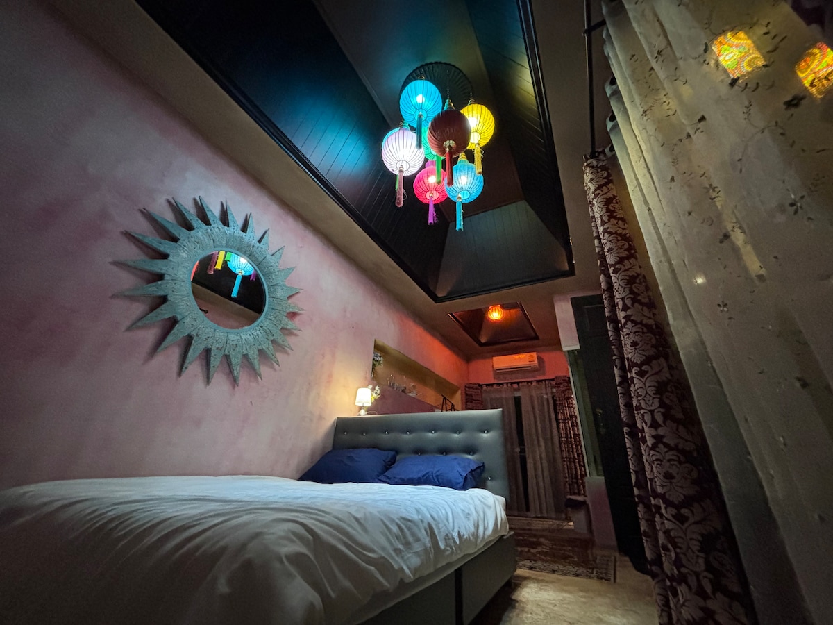 บ้านขนาดเล็ก 2 ห้องนอน King Size 2 ห้องน้ำ กับ AC อินเตอร์เน็ตร์ พร้อมอุปกรณ์อำนวยความสะดวก ให้ความรู้สึกเหมือนกำลังพักผ่อนในบ้านแห่งหนึ่งในชนบทกลางหุบเขา เสมือนกำลังพักผ่อนที่บ้านญาติของคุณ เที่ยวได้ทั้งครอบครัวเมื่อเข้าพักในที่พักใจกลางเมือง ปลอดภัย เพียง 10 นาทีสำหรับการเดินไปยัง Center
