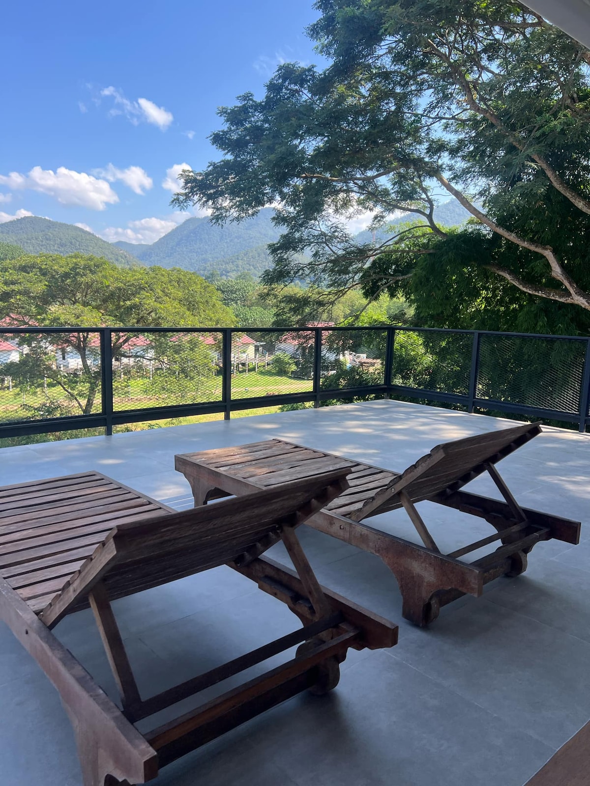 Family Apartment (max 2 adults & 1 kid) on 3rd floor with great mountain view, 1 queen size & 1 single bed, desk, TV, fridge & shower. Shared Fitness area, Rooftop, Garden & kitchenette on the same compound. Free to use. The compound is adjacent to a beautiful small stream & directly next to the Saturday market park with a huge playground. Surrounded also by many cafe's, restaurants, Yoga Centers & co-workings. Even the night market at the famous walking street is only a 10 minute walk.