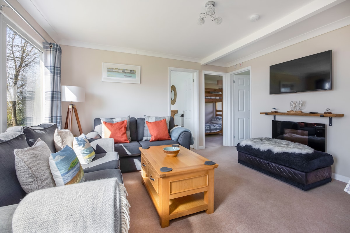 River View Chalet 317, where you can unwind, relax and is the perfect location to explore the South Hams. Set within 22 acres with no live entertainment on site you can enjoy the view of the River Dart, the Forest and hills towards Downton and Torquay in the distance. 2 miles from Dartmouth and the lovely Blackpool Sands beach is only 10 mins drive. Woodland Family Theme Park and Dartmouth Golf Club are less then 3 miles and Dartmoor National Park just 30 mins for further exploration.