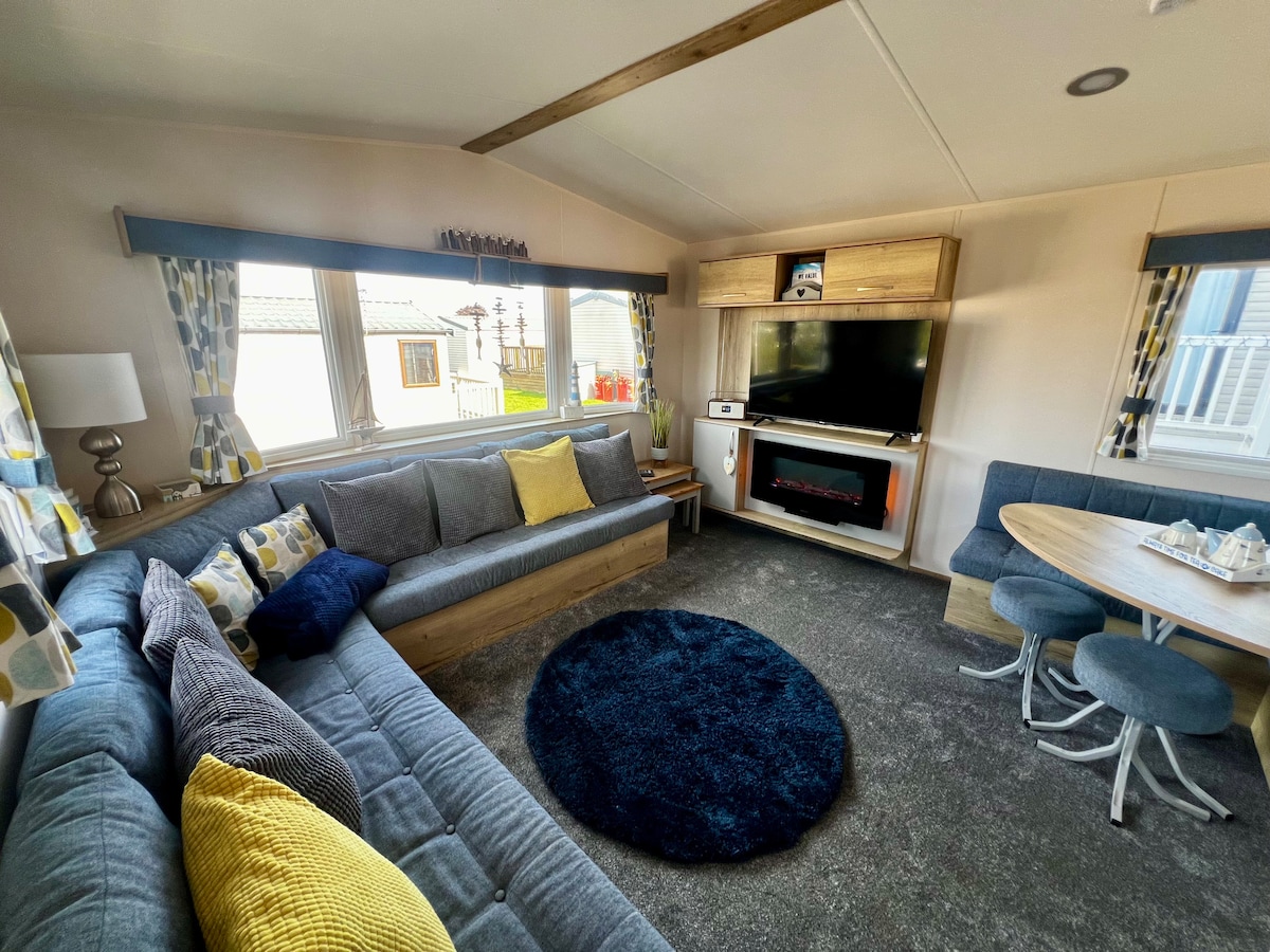 Our spacious Luxury Lodge is situated in Paignton and offers a range of amenities for the whole family: On-site Facilities: Restaurant Kids' Club Bar Seasonal Outdoor Pool Playground Free Wi-Fi Private Parking Lodge Features: Relaxing Spaces: Enjoy a comfortable living area with a 55" Smart TV. Modern Amenities: Fully equipped kitchen with all the latest conveniences. Bedrooms: Each bedroom features its own TV for added Bathrooms: There is an ensuite with a shower and a separate, bathroom.