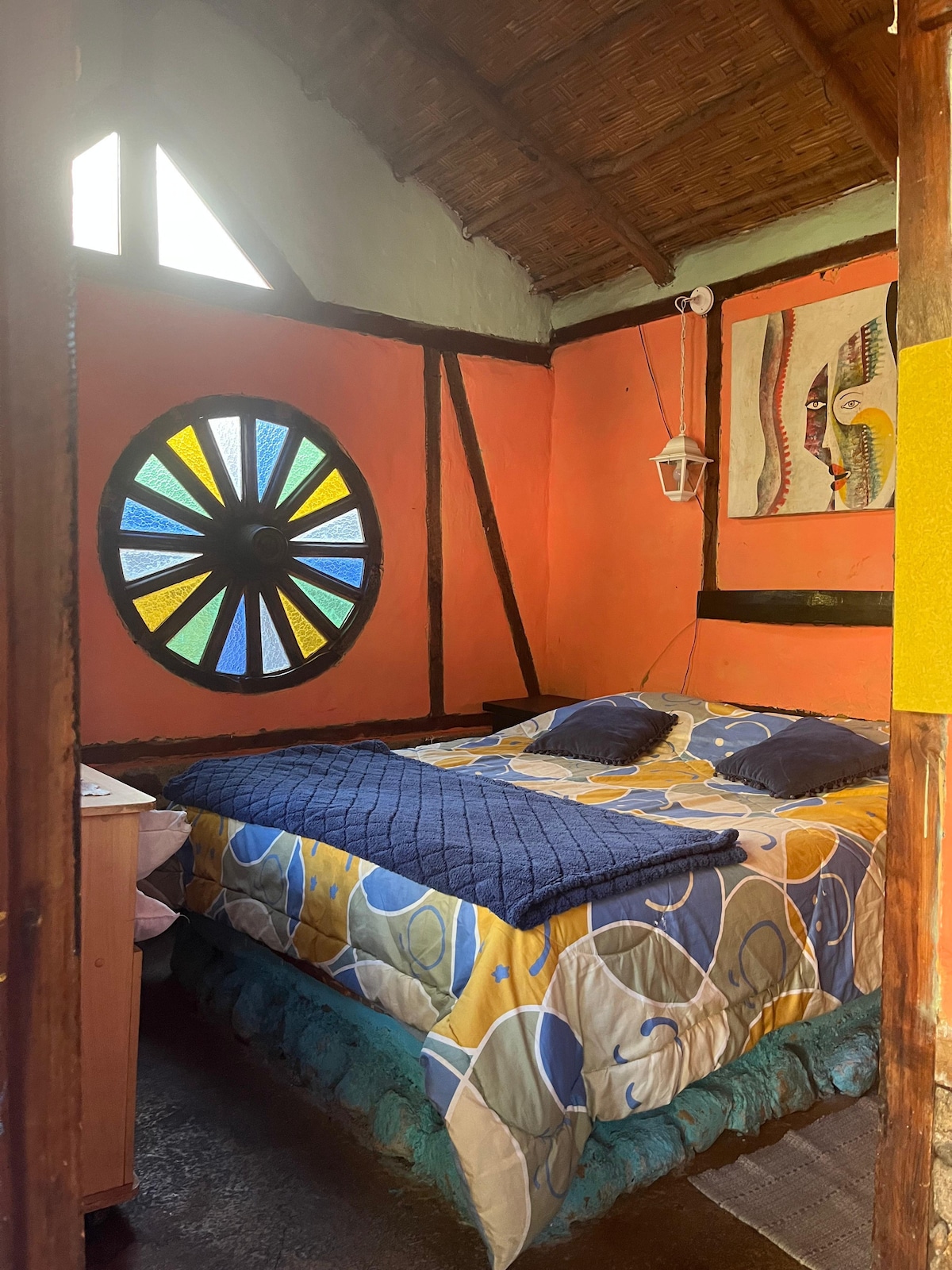 Cabaña Palomita para dos con vistas al majestuoso Valle,con cama king,baño en suite,cocina full equipo y jacuzzi privado con ducha al exterior Balcones y espectacular terraza con parrilla a carbon y una cama circular al exterior donde podrás relajarte en esas tardes mágicas e inolvidables del Valle Relájate con una escapada única donde podrás vivir la increíble experiencia de ver salir el sol y la luna sin salir de la cama de la linda habitación en Cabañas Elquimista- Pisco Elqui.