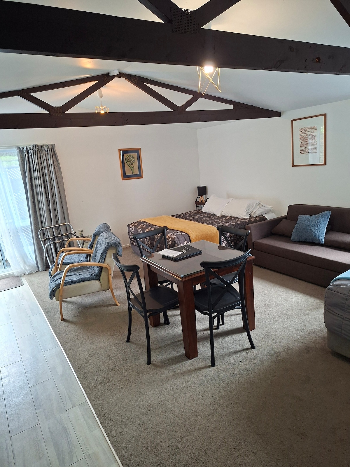 A peaceful, well appointed, dog friendly bach offering fantastic rural views – perfect couples getaway for a relaxing break • 1 bedroom, private self contained apartment with a large deck and fully fenced garden. • Stunning view over the valley. • Comfortably appointed, providing everything you need for your holiday. • A house-trained, friendly, well behaved dog is welcome to the bach (just let us know your are bringing your pooch when you book)