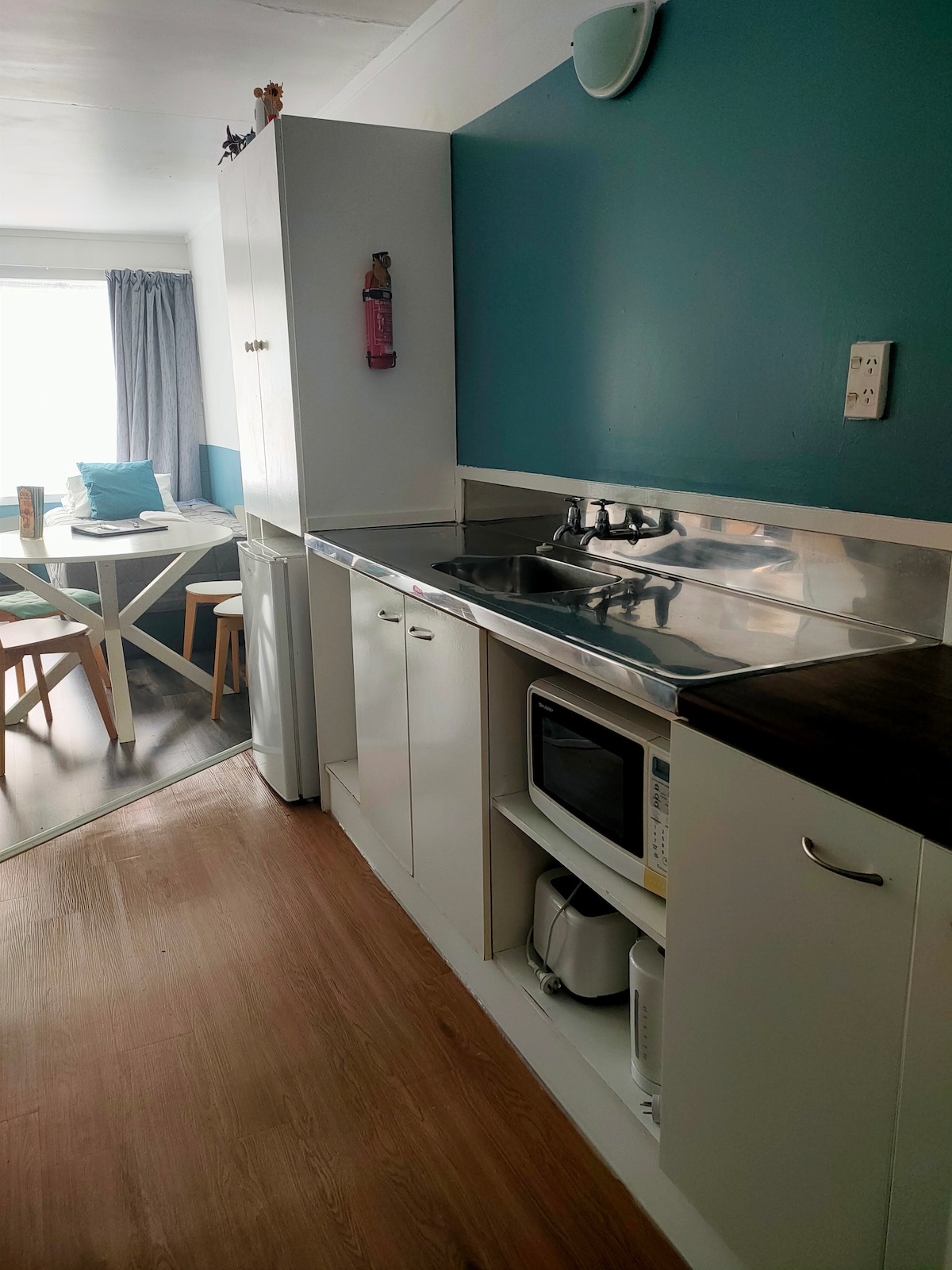 Ground floor studio apartment - below our home in the quaint village of Hihi beach. 10 minute drive to Mangonui. Opens to a lovely garden and street. The studio entails a comfortable queen bed, a 3 seater sofa bed, wardrobe. Kitchen comprises of a table & chairs, electric frypan, hotplate, microwave, toaster, fridge, tea coffee etc. Bathroom has shower, toilet and vanity. The apartment opens to a lovely deck with a BBQ, it's sunny and private. Great beaches, walks, parks, great fishing.
