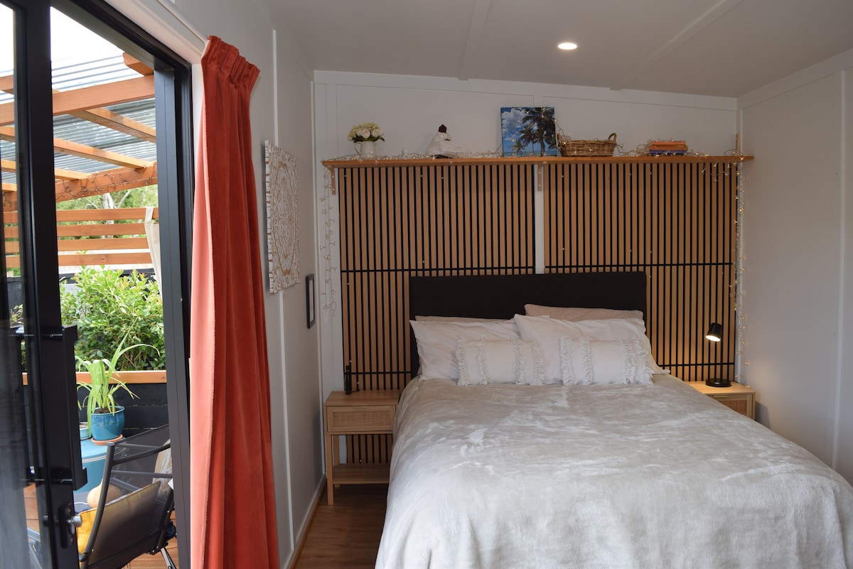 Take it easy at this unique and tranquil getaway. Wake up to views of Whale Bay with birds singing under the totara trees. One room with king size bed, ensuite , self contained cabin with amazing views. Look out to the sea from the shower! Throw open the doors and listen to the waves. Gorgeous bush walks either on site or walking the headland track over to Matapouri. Whale Bay bush walk 5 min walk away. Use of the outdoor kitchen, with glamping style facilities. Pet friendly on request.