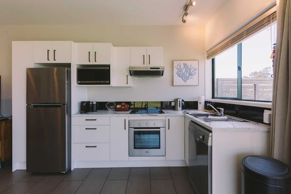 The Smokehouse – a charming one-bedroom retreat where peace and relaxation meet a touch of fun. After a day at the beach, cool off with the outdoor shower, then kick back with a refreshing drink at the bar. As night falls, slip into the super king bed and drift off, dreaming of your next adventure. Enjoy a scenic walk around the beach into Paihia, just a 20-minute stroll, or take a quick 4-minute ride to the heart of town. It’s the perfect blend of calm, convenience, and beauty for your getaway!