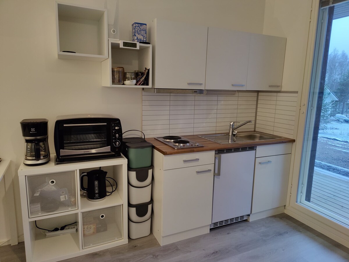 Tervetuloa majoittumaan meidän talossa sijaitsevaan omalla sisään käynnillä olevaan yksiöön 20m². Petipaikkoja 2-4. Asuinalue on rauhallinen ja lähellä moottoritietä. Talomme on vuonna 2022 valmistunut. Pihassa on parkkipaikka ja mahdollisuus sähköauton lataamiseen lisämaksusta. The apartment is 20m² and is located in our house with its own entrance. Fits 2-4 persons. Quite neighborhood and close to motorway. Our house is new. Free parking and ev-charge possibility with extra cost.