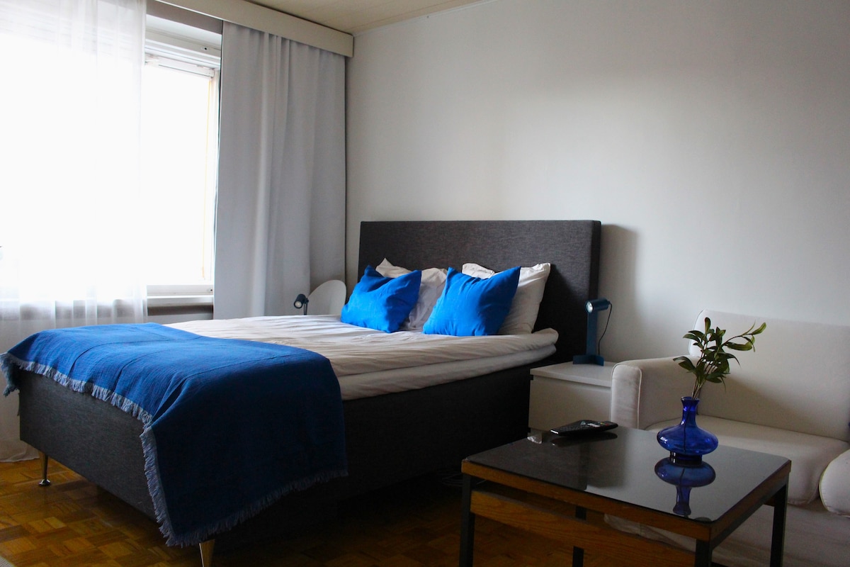 A brand new studio apartment in a lovely environment near the Turku Castle and the harbour. The city center is just a 20min walk away by the beautiful riverside. The apartment has everything you need for a short visit or a longer stay, a fully equipped kitchen, bathroom, a new larger double bed and a lovely patio. Wi-fi access will keep you connected on your trip. Guests can now also enjoy a new TV. Uusi yksiö lähellä Turun satamaa, kävelyetäisyydellä keskustaan.
