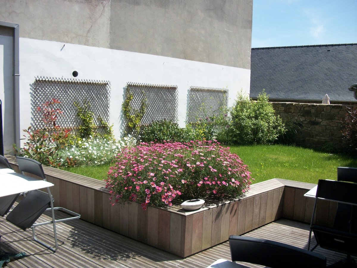 A 5kms des plages de Locquirec, à la campagne, nous avons réalisé cette chambre d'hôte dans une ancienne dépendance en 2020 indépendante de la maison principale. Jardin à disposition, bassin, adirondack pour se délasser. Animaux non acceptés Pour les cyclotouristes nous sommes à 4 kms de la voie verte et du GR34, un local sécurisé est à disposition pour les vélos. Possibilité de réparations gratuites dans la limite du possible. Linge fournis. Petit déjeuner en option au prix de 6,50 €