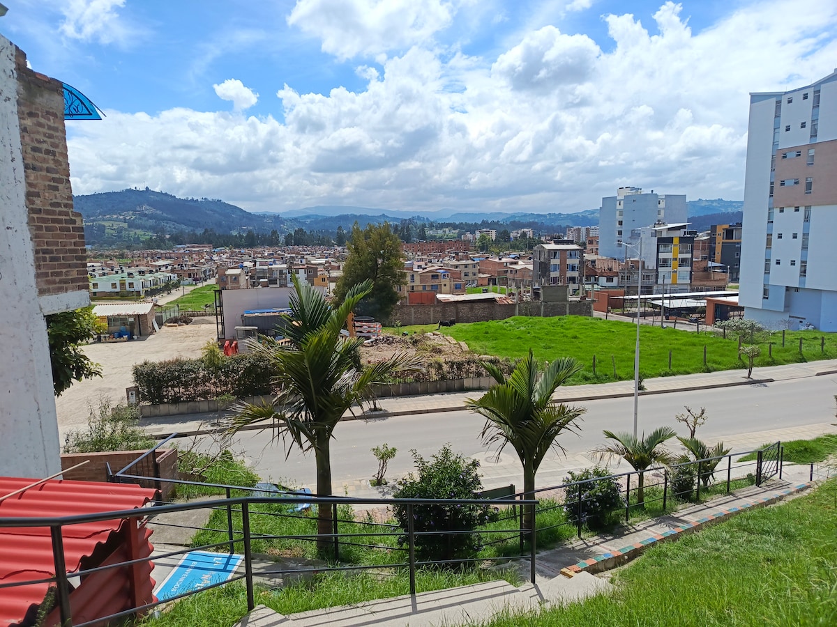 Disfruta de una estadía cómoda en este amplio apartamento, ubicado entre el centro y Lago Sochagota, termales, restaurantes, supermercados y atractivos turísticos. A 8 minutos del aeropuerto, con 3 habitaciones, sala-comedor, balcón, chimenea, cocina equipada, zona de trabajo, wifi y bahía de parqueo en frente o parqueo de pago a 4 cuadras. Perfecto para familias, parejas o viajeros. Tarifas especiales en el Spa del segundo piso para nuestros Huéspedes.Tu escape perfecto en el corazón de Boyacá!