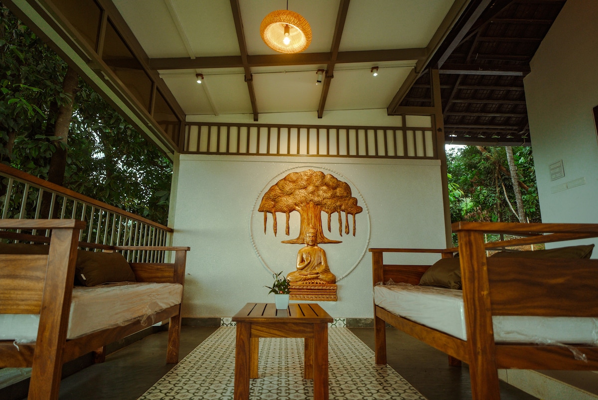 Welcome to Kachiprath Tharavad—a quiet, heritage home with beautiful field and pond views. Stay on the first floor with two AC bedrooms for up to five guests. Enjoy a meeting room, dining space, carrom table, and direct access to the natural pond, which guests are welcome to use. Experience peaceful countryside charm with all modern comforts—a perfect, relaxing escape.