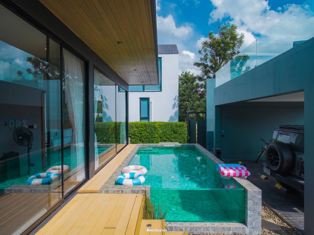 Stunning Villa in Khaoyai 📍Located on Hillside with Mountain-View surrounded by Clear Sky, Relaxing Nature and Fresh Air ☀️ Enjoy Wonderful Sunset and Sunrise just a step from Room Perfect Villa size26sq.m. makes you feel like Home 🏠 - Bedroom with queen size 🛌 - Large Window and Adjustable Sofa - Dining area ☕️Close to Popular cafes, Restaurants and Tourist Attractions Accessible to Makro, BigC, Tesco, 7-11, or Enjoy Delivery Food at your Doorstep(Order via Grab/ Line Man/ Food Panda🍔