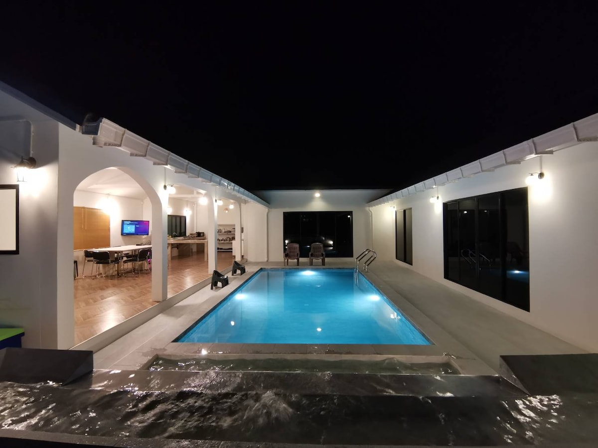 Escape to our cozy villa in Khao Yai, Thailand, where nature meets comfort. Enjoy stunning mountain views from the balcony and a peaceful cornfield vista from the living room. Your stay includes hotel-style amenities, a pool table, game console, board games, and karaoke with musical instruments. Start your day with a delicious breakfast and end it with a BBQ by the outdoor fire pit under the stars. Perfect for relaxation or fun, our villa is your ideal getaway destination.