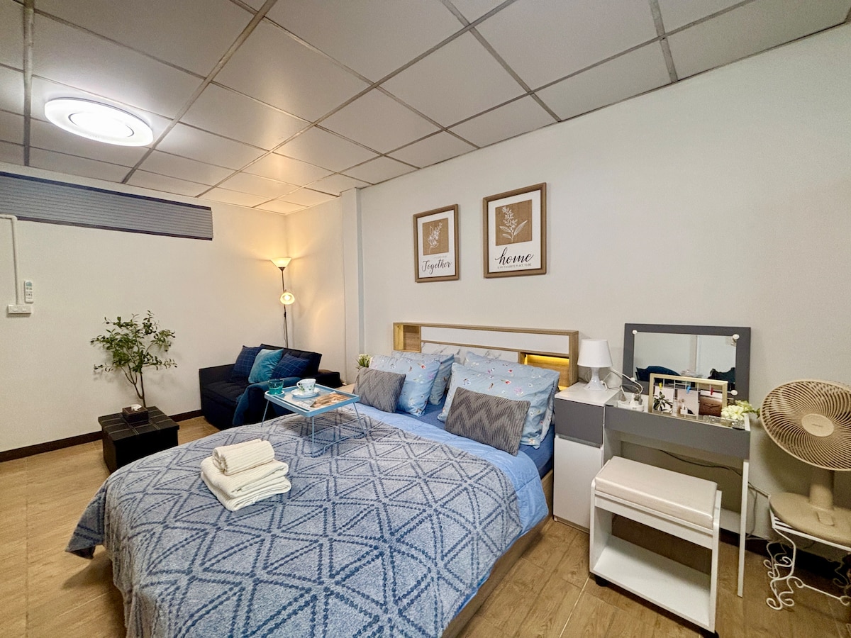 Perfect for solo stays or group trips. whether traveling alone, with family, or friends. The room features a large bed, and a fully equipped kitchen with cookware, dishes, and dining area. Enjoy high-speed Wi-Fi, air conditioning, Smart TV with YouTube and Netflix, washing machine, dryer, and plenty of storage. Located near shopping malls, BTS station, van terminal, and 24-hour supermarkets. Easy taxi access and surrounded by affordable local food. Just a short drive from Don Mueang Airport.