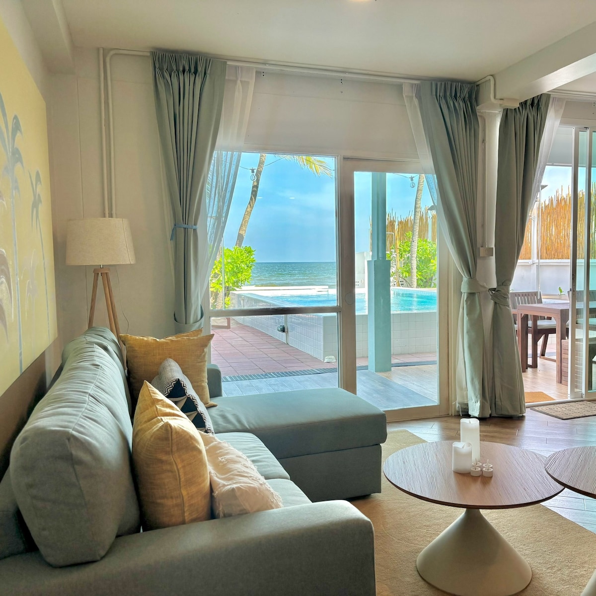Supreme Hua Hin beachfront condo inside Dusit Thani Resort – 160 sqm with 2 bedrooms, ocean-view balcony, full kitchen, and fast Wi-Fi. Enjoy Netflix & YouTube Premium on Smart TV. Free access to 5-star resort pools, gym & tennis courts. 24/7 security, porter service, and Nordic-Tropical design make it perfect for families or couples. Book your exclusive Hua Hin escape today!